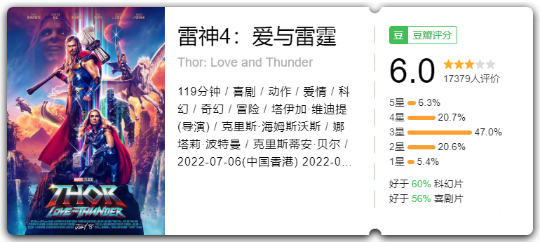 时间线紧接《复联4》,讲述雷神托尔“用爱发电”的宇宙追爱大冒险。