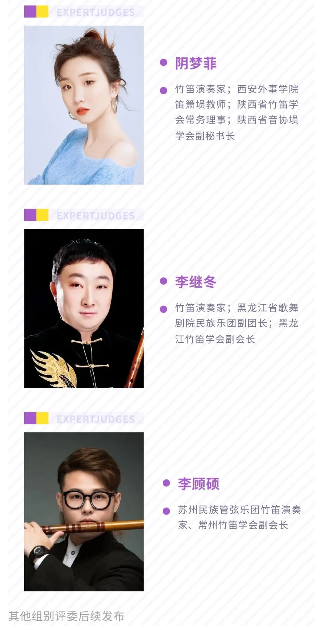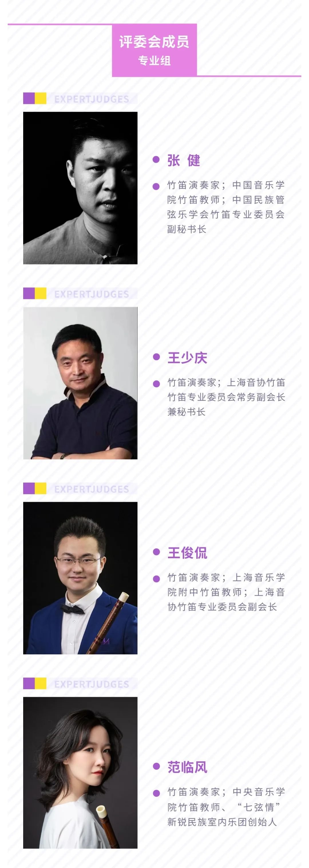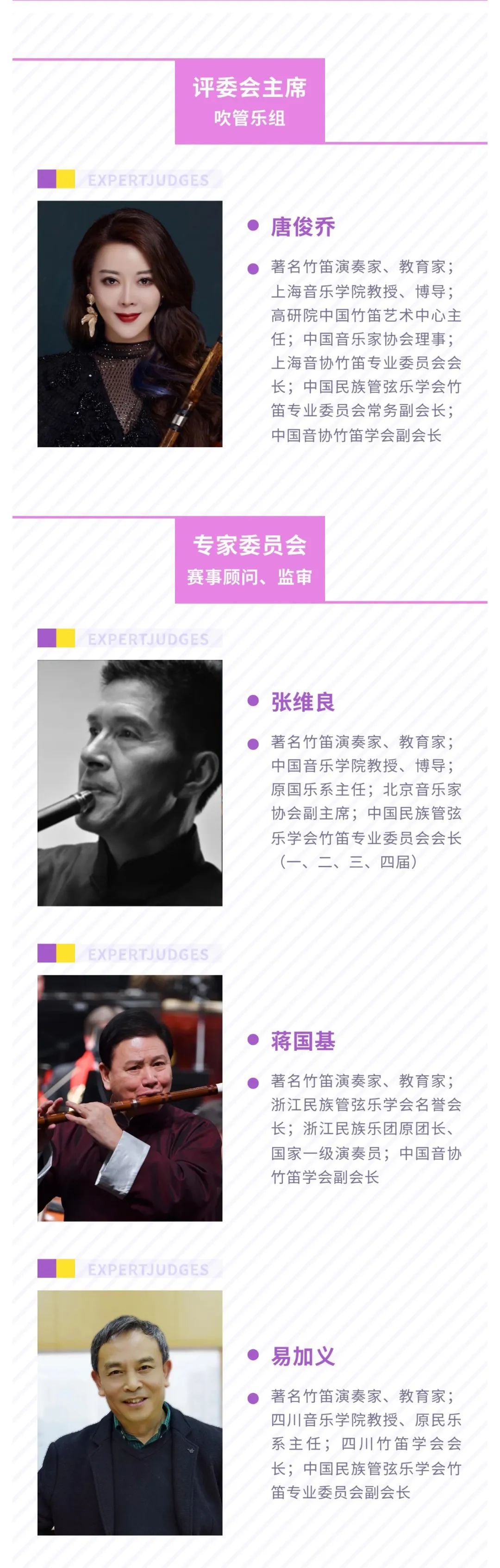 日前,组委会已广泛邀请到海内外知名音乐家担任国乐竞演大赛评委,现发布吹管乐专业组评委和赛事监审、专家顾问团介绍。