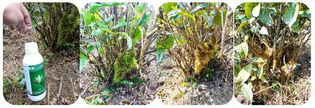 在种植过程中发现,茶叶主要生长在湿度比较大的区域,非常适合青苔的生长。尤其老茶园,整个树干、叶片上披了一层厚厚的绿衣。由此,青苔病便成了茶叶上的颜值杀手,也是导致产量和品质降低的始作俑者之一,然而在防治上却是一大难题。