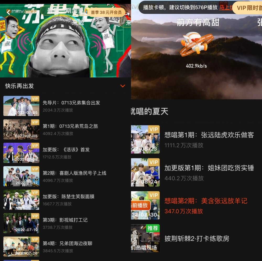 譬如:《快乐再出发》和《想唱就唱的夏天》,呈现出何为“同综不同命”。芒果站内播放量数据显示,《想唱就唱的夏天》首期播放量超过一千万,但第二期节目只有347万次播放,而《快乐再出发》播放量轻松破千万,平均在4千万次。