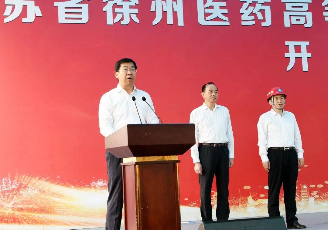 省药品监督管理局局长、党组书记田丰宣布项目开工;市委副书记、市长王剑锋,市委常委、经开区党工委书记张克,副市长吴卫东,经开区党工委副书记、管委会主任臧晓鹏;省住房和城乡建设厅集中建设管理处副处长冯刚,徐州医药高等职业学校校长杜庆等出席活动。