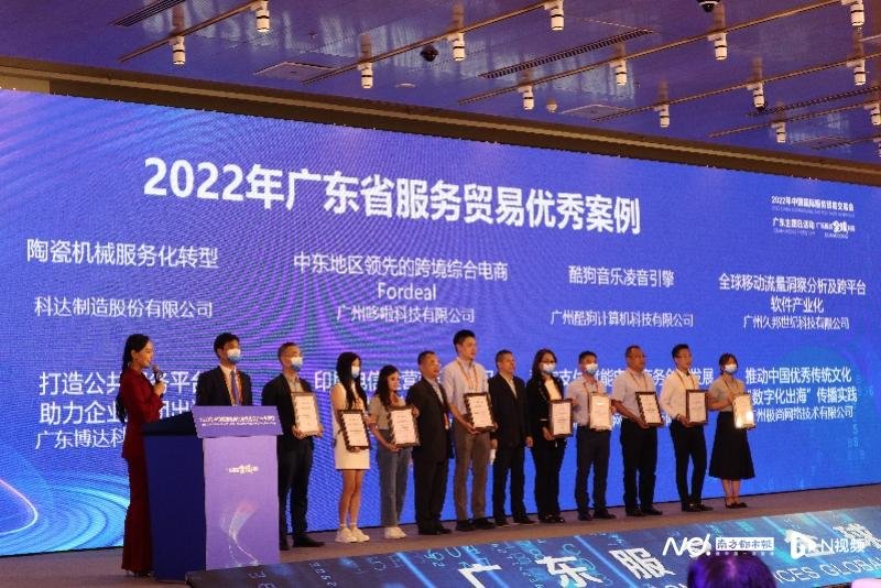 南都讯 2022年中国国际服务贸易交易会(下简“服贸会”)8月31日晚在北京开幕,广州代表团90家服务贸易重点企业集体亮相。本届服贸会上,广州向全球发布数字贸易宣传片《广州奔流,数贸未来》和《广州数字贸易发展报告(2021-2022)》。广州推荐的粤港澳国际供应链公司(全球优品分拨中心数字服务贸易平台DSTP案例)、哆啦科技(中东地区的跨境电商平台案例)和白云机场(基于全生命周期的航班运行卓越品质提升经验)3个案例入选服贸会全国优秀服务贸易案例,哆啦科技、酷狗、久邦世纪、浩鲸云、极尚网络5家广州企业案例被评为广东省服务贸易优秀案例。