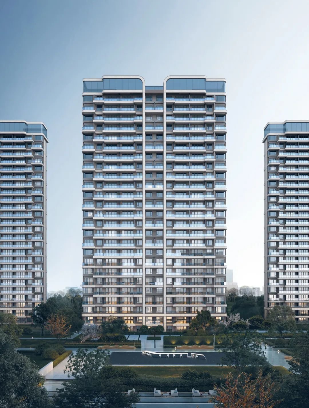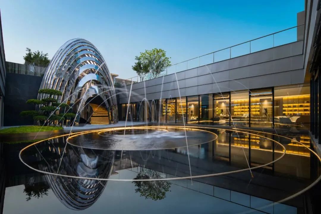 比如,更为通透和美观的建筑立面;弧形玻璃类幕墙,视野开阔的“曲线”设计让建筑更加灵动且极具时尚未来感;加上创新开发挑高的空中庭院,革新居住方式;还实现入户大堂、首层和地下精装大堂三重大堂设计。