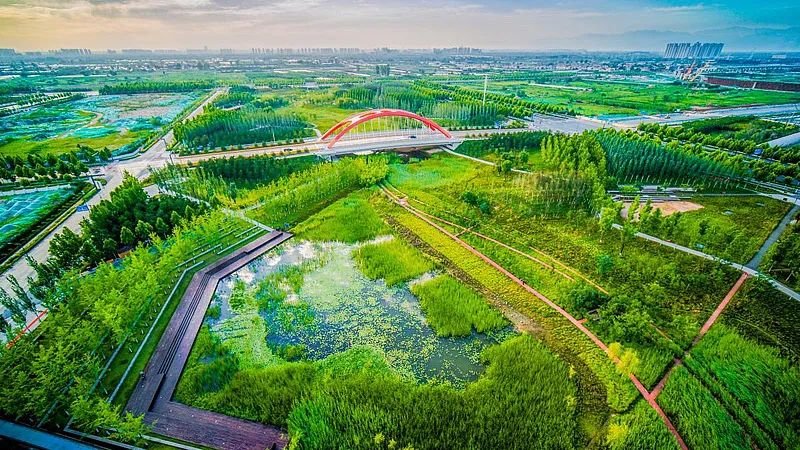 实际上要谈及这方面,沣西新城同样无惧考验,像总长7km的沣西绿廊,以中央公园为主体,湿地公园为基底,遗址公园为特色,口袋公园、高线公园为补充,构建出公园城市体系,沣西新城在这方面更是“底气十足”。