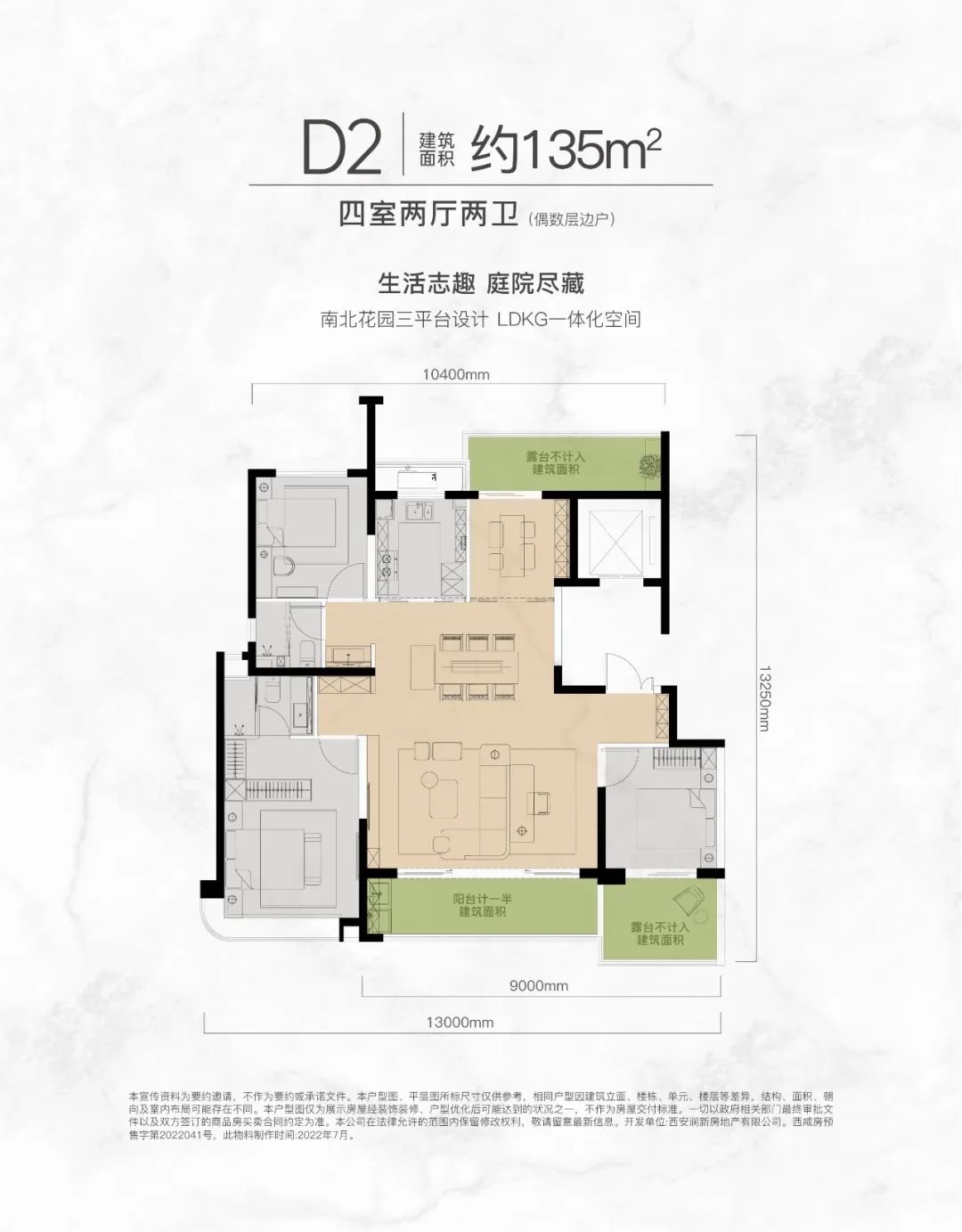 建面约135㎡云端院墅,约6M挑高双露台,营造花园、书房、观星台等美好情境,扩展市场上难得一见的三花园平台,LDKG互动方厅,串联客餐厨阳台四大功能区,约270°弧形类幕墙,带来环幕宏大视野,从功能满足到品质进阶,为生活营造更多可的能,全方位敬献更理想的居住方式。