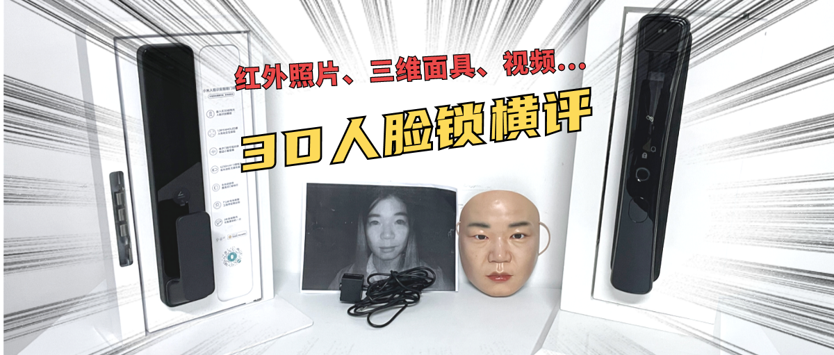3D人脸识别技术原理是通过光源投射、计算光线发射和反射时间差等方式,获取人脸实时三维信息,并与已存储的脸部信息对比。为了深度测试3D人脸识别锁的安全性,研究组选择了两款价位不同的智能锁进行对比评测。