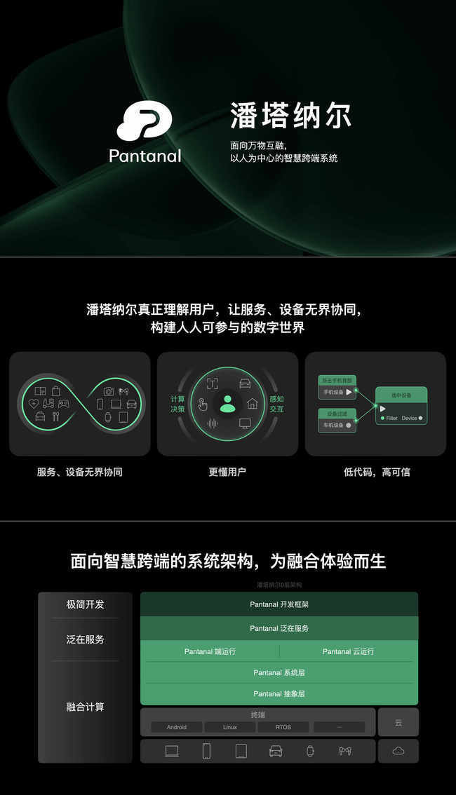 对用户来说,潘塔纳尔的出现使其不必局限于仅购买OPPO的设备;第二,对生态、对开发者来说,只要完成一次开发,可以在多端上部署;第三,汽车或者是其他设备,很难再独立建立一个完整的生态范围,可以把手机上完整的生态迁移到其他设备上去,所以这是一个多赢的选择。