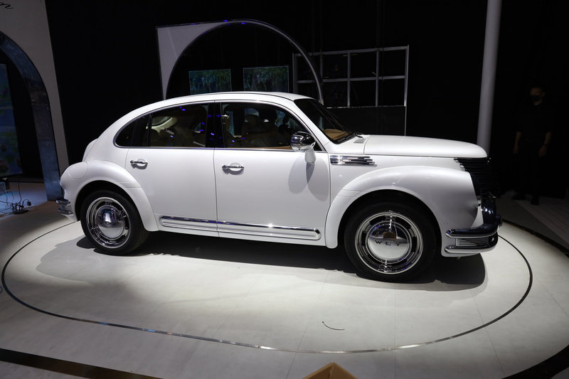 尺寸夸张的镀铬前格栅占据整个圆梦的前脸,车身两侧是外凸的轮眉,搭配圆形头灯组,细节到雨刷都是采用了复古设计,加上经典的老爷车背,让人看到它的瞬间,就有种梦回上世纪的感觉。