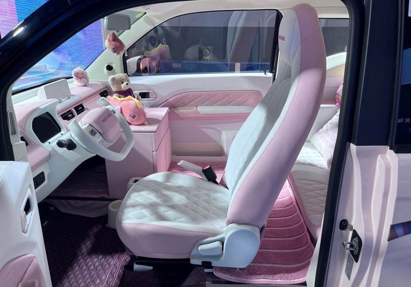 内饰上,QQ冰淇淋Queen Space的副驾驶直接变成少女们的梳妆柜,后排座椅则加入靠枕与玩偶进行装点,衬托元气少女的可爱风格;