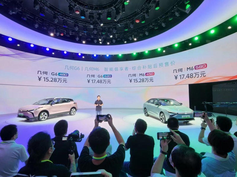 几何G6预售2款配置,预售价格15.28、17.48万元,续航分别为480公里、620公里;几何M6预售2款配置,预售价15.28、17.48万元,续航分别为450公里、580公里。