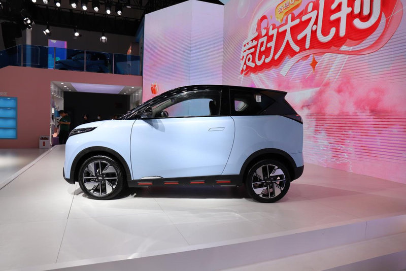 新车外观采用“雷霆机甲”设计理念打造,风格有点撞脸广汽GE3,大灯有点撞脸AION Y,尺寸为3402/1680/1550mm,轴距为2160mm。
