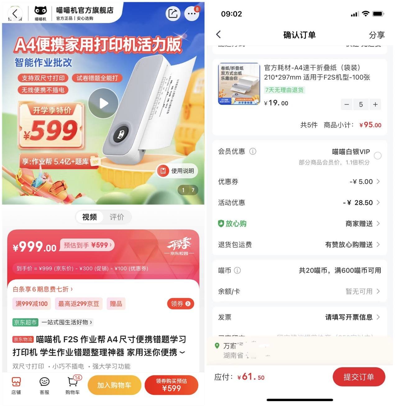 再来看看综合成本,F2S打印机的硬件价格,标准版为999元,而打印纸的价格方面,以A4折叠纸为例,500张A4打印纸的价格为61.5元,纸张打印成本为0.123元一张。