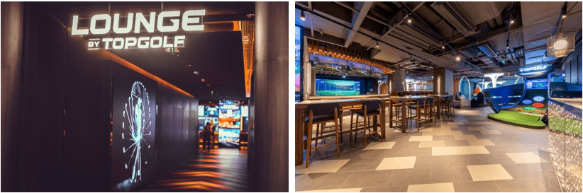 2021年,亚洲体育娱乐有限公司携Lounge by 拓高乐(Topgolf拓高乐品牌家族中贵宾厅形式的室内沉浸式空间)率先进入上海,依托中区广场2楼的整层空间,占领城市中心黄金商圈:人民广场(近上海大剧院)。约2700平方米的室内空间,将体育娱乐、泛亚美食、创意特调、迷你高尔夫、交互模拟器聚集于同一屋檐下,Lounge by拓高乐——城市概念店的定位,也将不同年龄段、不论运动水平的消费者,通过健康有趣的娱乐方式集结。Lounge中作为潮流玩家聚集地的拓高乐挥杆套房(Swing Suite),外形为独立包间可供6至20位朋友相聚。内载Full Swing专利技术1:1还原全球逾80个球场,亦有从经典的拓高乐挑战赛、高尔夫版钻石消消乐,到棒球投掷、四分卫挑战、击打曲棍球、“僵尸闪避球”的交互球类游戏。超爽震撼高清大屏,使每款游戏都能带领玩家身临其境地感受激动人心的体育娱乐新体验。如此新潮的Swing Suite,消费者在不久的将来也可在成都快闪店、成都旗舰店解锁体验。