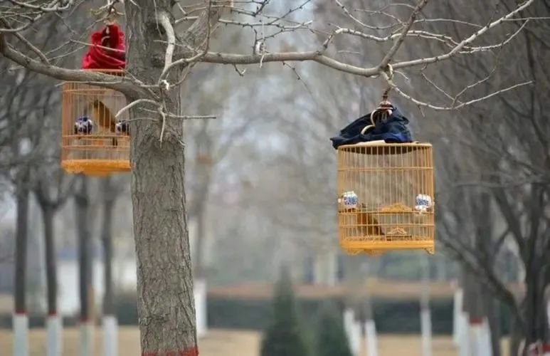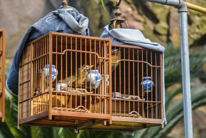 鸟为什么要“遛”?不遛不叫。鸟必须习惯于笼养,习惯于喧闹扰攘的环境。等到它习惯于与人相处时,它就会尽情鸣叫。这样的一段驯化,术语叫做“压”。一只生鸟,至少得“压”一年。