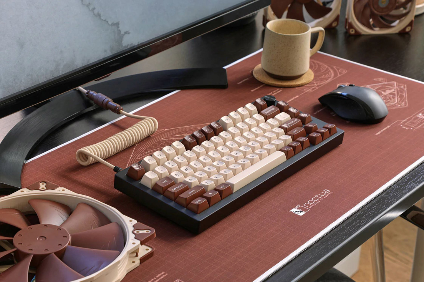 如上图所示,该系列键帽采用与 Noctua 风扇相同的经典米黄色、棕红色配色。