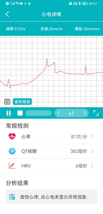 DIDO的心电检测使用了第5代人机双频交互ECG+PPG混动导联技术,30s就能够收集到有效数据,经过HRV分析结果,我的心电未显示异常现象。