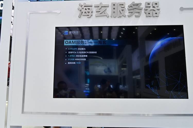 在展会上,壁仞科技也带来了创下全球算力纪录的海玄服务器,能够提供高达8PFLOPS(8000万亿次每秒)的浮点峰值算力,最高实现8卡全互连,支持PCIe 5.0主机接口与CXL互连协议。