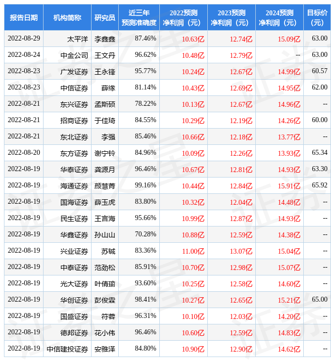 以下是详细的盈利预测信息: