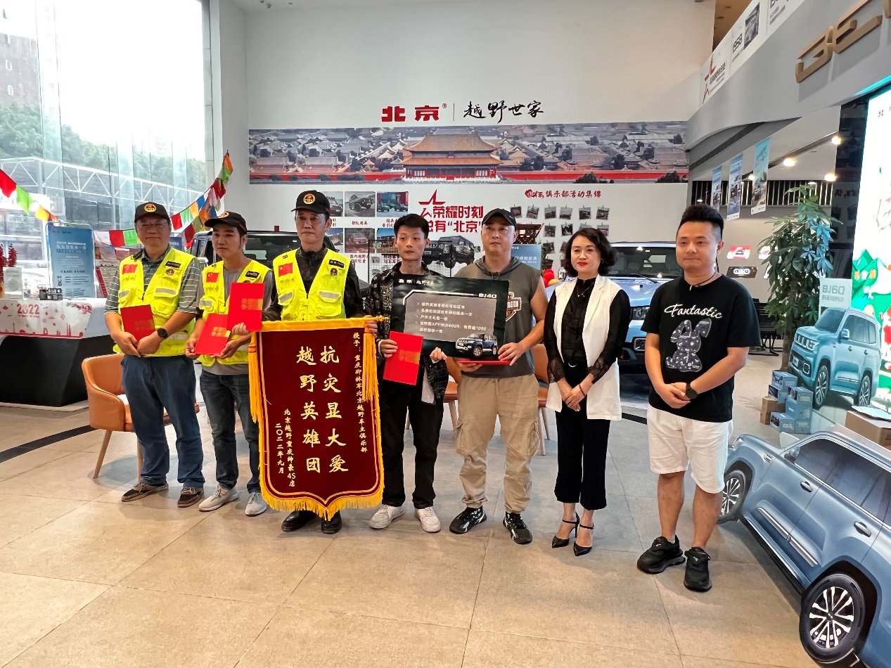 如今,山火灭,城归宁。鉴于众多重庆BJ40车主在山火期间的英勇表现,9月1日,北京越野向在此次救火行动中,发挥重要作用的“重庆御林军北京越野车主俱乐部”颁发了锦旗。同时向古启刚、朱志雄、罗晓彬、王美均、何照桦五位积极参与此次救火任务的车主代表,颁发了“越野英雄”徽章、证书等奖励,其中包括救援车辆进行免费检测清洗车辆和保养一次,以及户外大礼包、悦野圈APP积分等。关键时刻勇于担当,重庆山火期间BJ40车主所展现出的英雄气、无私奉献的品质,值得所有越野人学习!