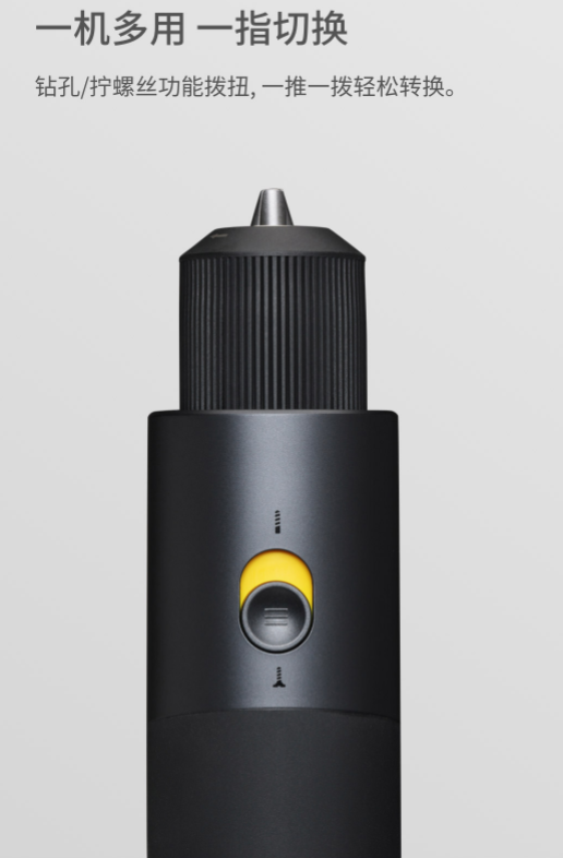 刚拿到手的时候同伴都以为我买了个筋膜枪,确实从外包装的概念图甚至打开包装的实体来看,小猴12V无刷电钻都不太像个电钻。机身采用了金属+ABS材质,哑光金属烤漆+雾面TPU软胶注塑包覆,手感极佳,更像筋膜枪了。