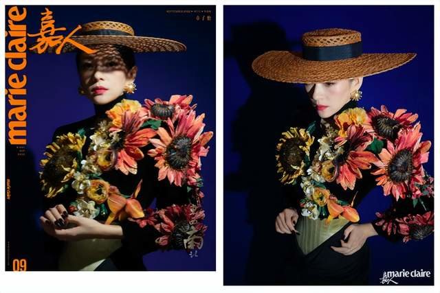 接着是最浓墨重彩也是个人认为最优秀的南北,南部这封身着Schiaparelli最新一季高定登封(2022秋冬,这一季高定非常精彩,没看过的都去看看,看过的请重温一遍),黑色束腰礼服上布满了各色花朵(花卉元素也算是新版嘉人的标志之一),无一不是灿烂热烈,不禁让人联想到我国最南边(这个花看起来很热带),又或是盛产鲜花的云南。头像上的编织草帽也仿佛回到了南方乡村,用竹片或藤条等物编织出件件实用或美观的器具。
