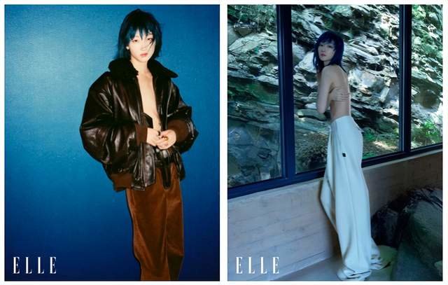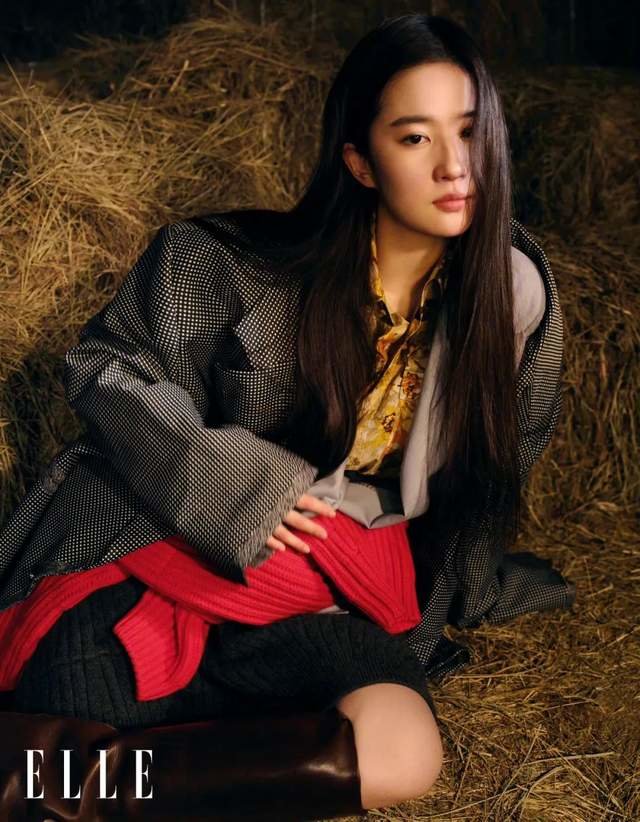 双封面(封面和封底),依旧是外景拍摄,拍得非常有秋日氛围,尤其是坐着那封,秋高气爽的旷远宁静感非常舒适,尽管是夕阳西下,色调也没有特别灰暗,整体温暖和煦。天仙拍得也很美,平静闲适,光影色调加成更有质感。这身look驾驭难度较大,ELLE团队也很聪明地选择了坐着拍,衣摆向两边延伸,更显大气,华丽的钉珠和稻草形成鲜明对比又互相呼应。另外一身驾驭难度相对较小的和前面周冬雨的一样规矩站着展示衣服,脸上的阴影有些奇怪,稍微有点呆,其他地方不功不过。