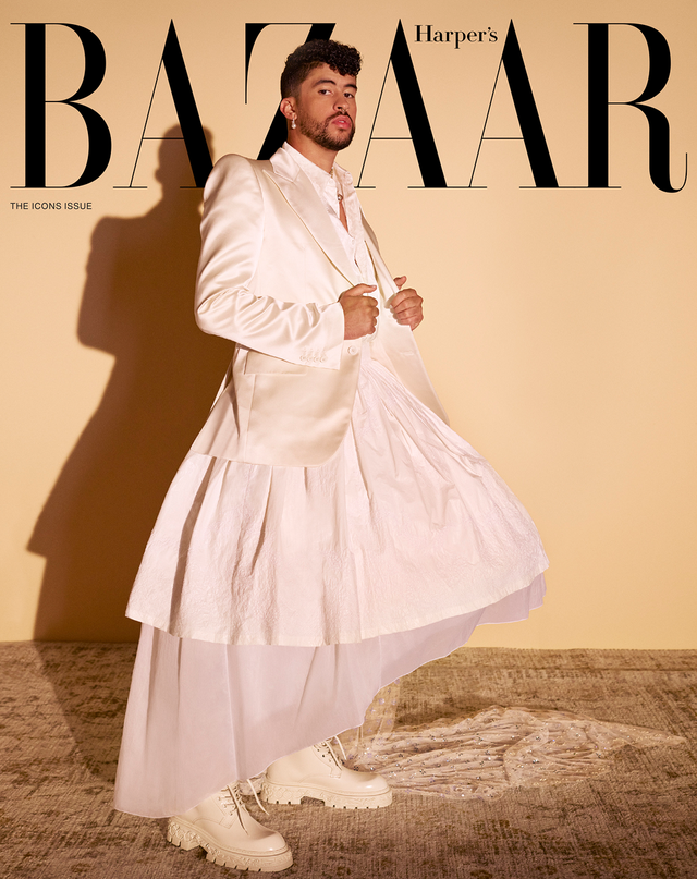 Bad Bunny(歌手,歌蛮火的,时尚类活动参加得也比较频繁)整体最佳(也就矮子里面拔高个的水平),造型比较有新意也算得上美观多样化,这种廓形层次比较复杂的造型统一色调会有效削减杂乱感,拍摄上面也没什么大问题。
