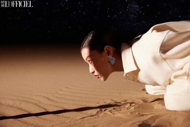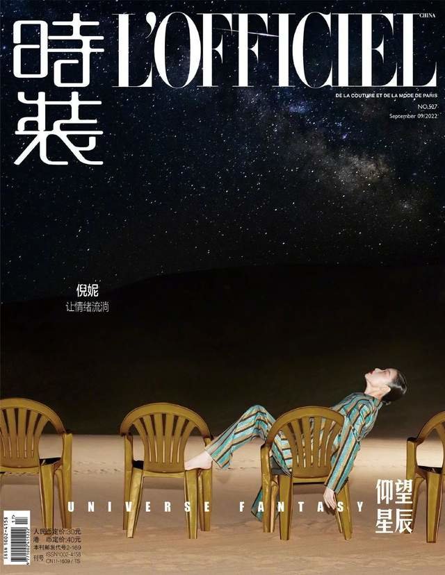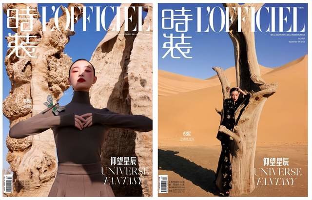 时装L’OFFICIEL这次下了重本,平时绝大部分都是棚拍的这次出了外景,为配合封面人物倪妮的新作《西出玉门》,团队远赴敦煌拍摄,排版中的“Universe Fantasy”也在互相呼应,这个制作非常有诚意了。