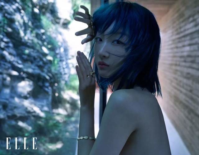 说回成品,不功不过,想要呈现Y2K的复古新潮感,但整体效果比较过时。蓝色调给这40度的高温天带来了些许凉爽,但也有些憋闷。3/4身那封色调稍微爽朗一点,但也放大了小骨架撑不起衣服这一缺陷,LV这一季相对而言好驾驭,但明显这一套以及这个角度和周冬雨不适配,造型上面可以再花些功夫。周冬雨这次的表现很不错,既有一贯的灵气,也展现了更成熟的一面,两种不同的风格把握也比较到位。假发大户ELLE这次自然也没忘记假发,蓝色的齐刘海短发色调上复古又灵气,和LV的衣服以及周冬雨本人的气质挺搭的,就是看起来有点毛糙影响质感。