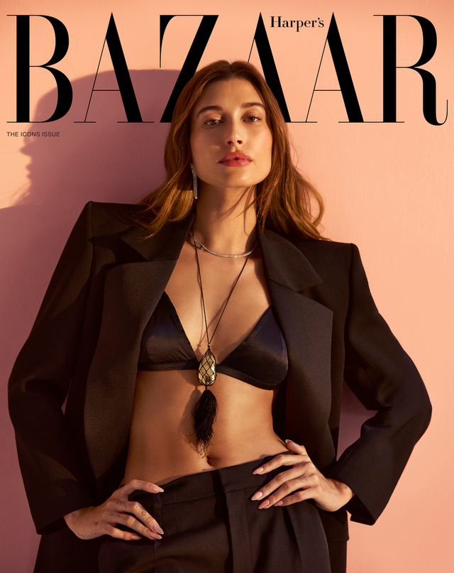 Hailey Bieber依旧是身着最爱的YSL登封,造型没问题,打光和背景增添了暧昧氛围,总体也算是和谐,但是为什么把脸拍得歪成这样。