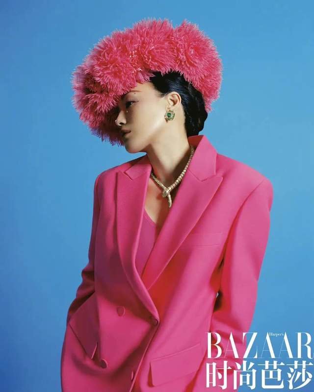 造型就很乡镇女企业家,俗气的粉色还配了个俗气的蓝底,“芭次元”的文案继续添砖加瓦,说是上世纪90年代画报也不违和。成熟的衣服首饰搭上少女感粉色水钻并没有所谓的反差萌,成熟性感的大美人不需要装少女。对于这个妆造只有一个原因可以解释:九月的一天,忙碌了一天的乡镇女企业家舒淇回到家,因为过于劳累倒在沙发上睡着了,调皮的女儿在她脸上贴上闪闪亮亮的小饰品,这滑稽中又带着温馨的一幕最后被记录下来(知道要配什么音吧?提示一下,某知名美食纪录片。其他版本欢迎补充)。