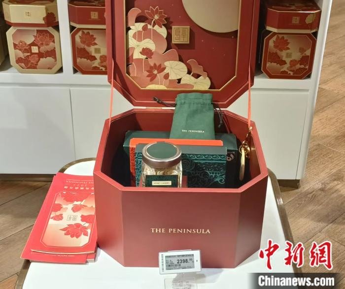 而在北京SKP,中新财经注意到,半岛酒店的月饼专柜有多款超过500元,甚至上千元的月饼礼盒,还有一款特殊的“中秋礼物篮”,里面只包含一份茶叶礼包、一盒龙酥糖、一盒巧克力、一盒蜂蜜糖和一盒辣椒酱,标价为2398元。