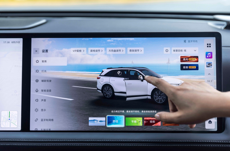 3D UI人机交互系统不仅让桌面上的图标由平面变为了立体的,还可以实现人机交互,用户可以通过触摸屏幕的方式升降车窗,调节后视镜、打开行李箱盖等,提升了座舱的机交互性和驾驶安全性。