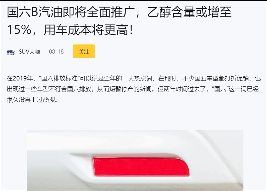 紧接着我发现,网上不少汽车自媒体纷纷以《广东提前进入“国六B”乙醇汽油时代,乙醇含量提高到15%,你敢不敢加》为题,发布了一些文章和短文。一时间也真的有广东地区的车友来向我求证。——因此下面我就这件事,来一次正式的统一回复!而且这也不是说给广东车友听的!今天的回复,也是同时针对全国其他地区的!