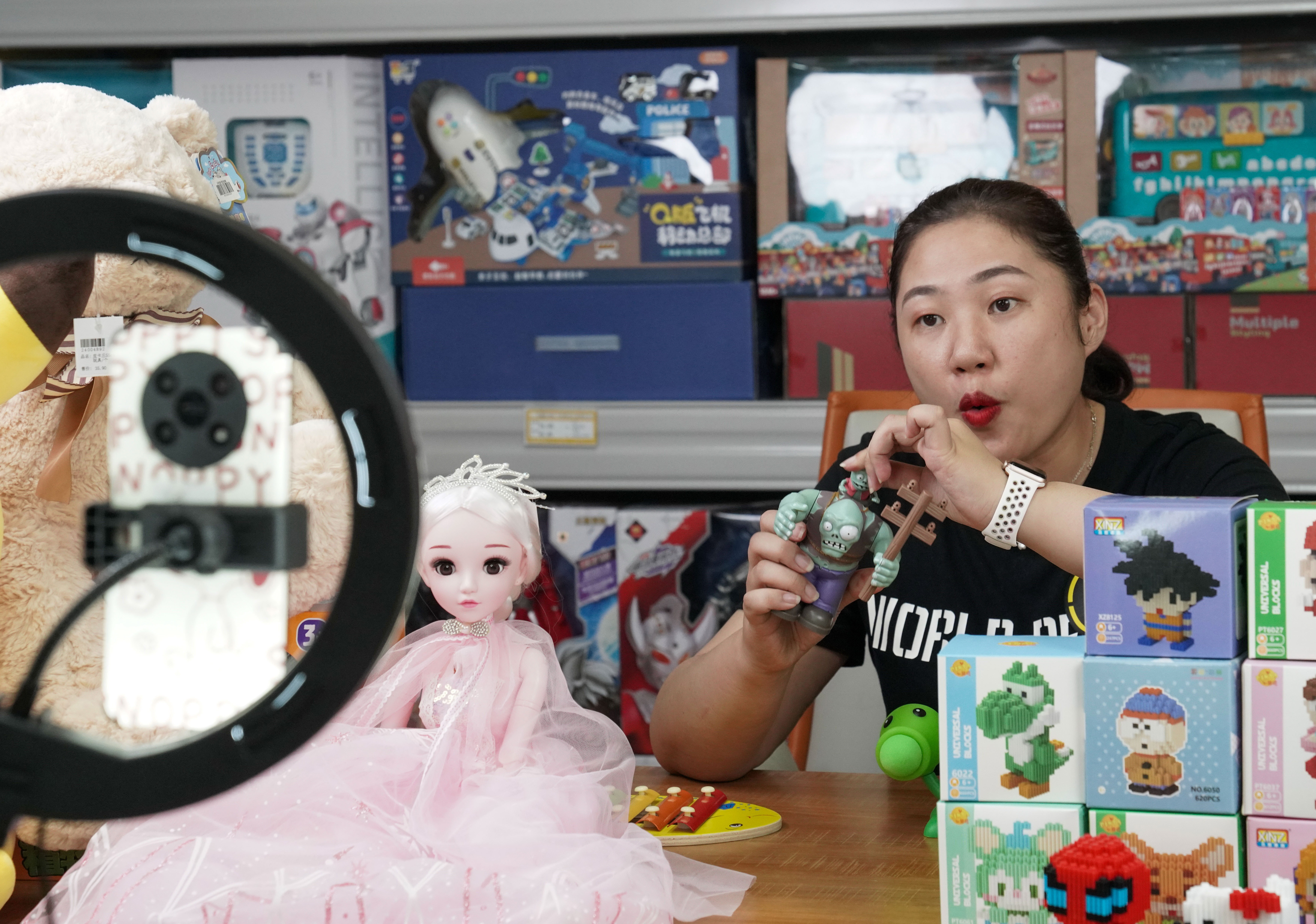 ▲5月28日,广西贵港义乌中国小商品智慧新商业产业园开业。图为商家在产业园中直播带货。图/IC photo