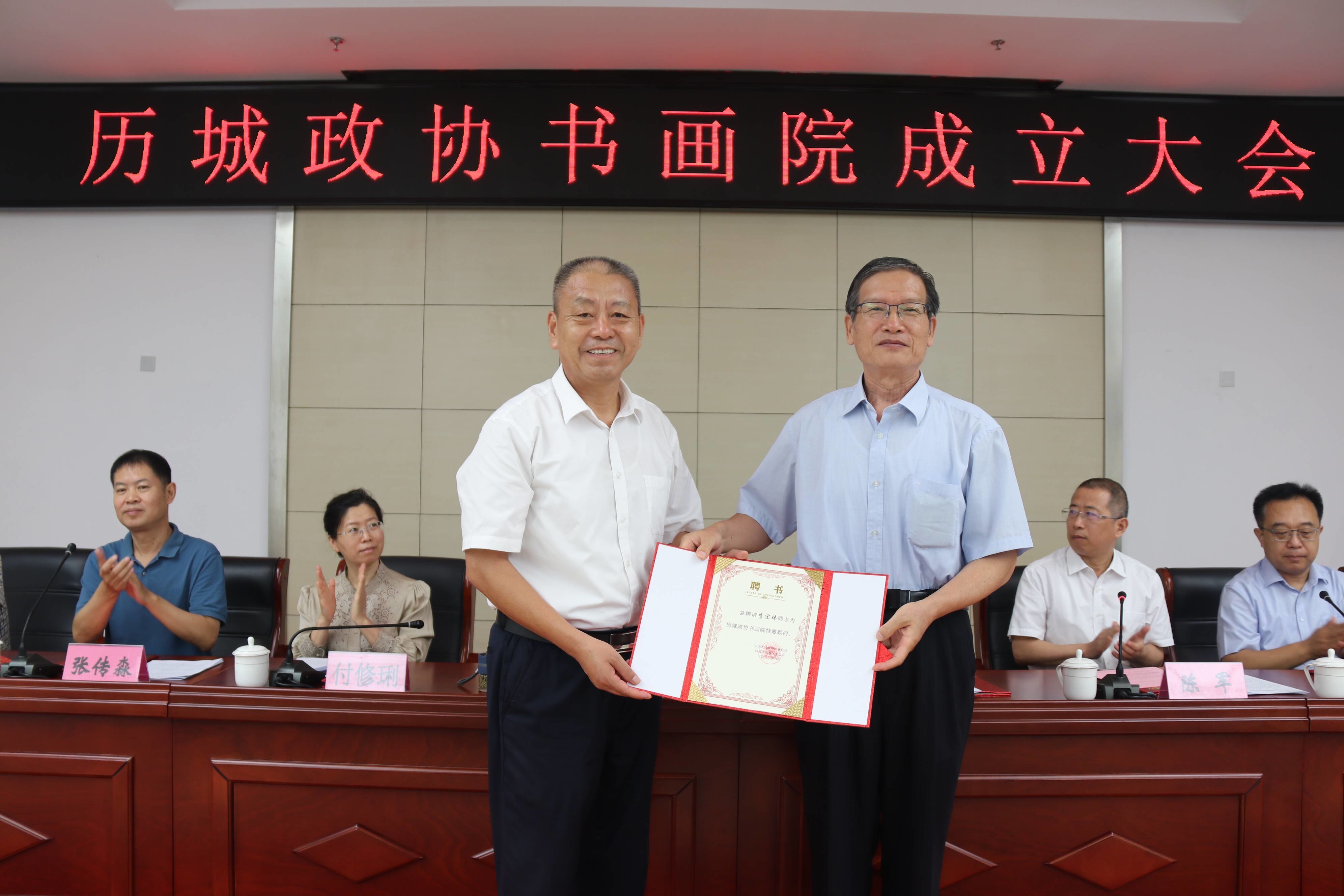 会议宣读了历城政协书画院人员名单及章程,并为名誉院长、顾问和书画摄影家代表颁发了聘书和证书,3位顾问代表发表致辞。