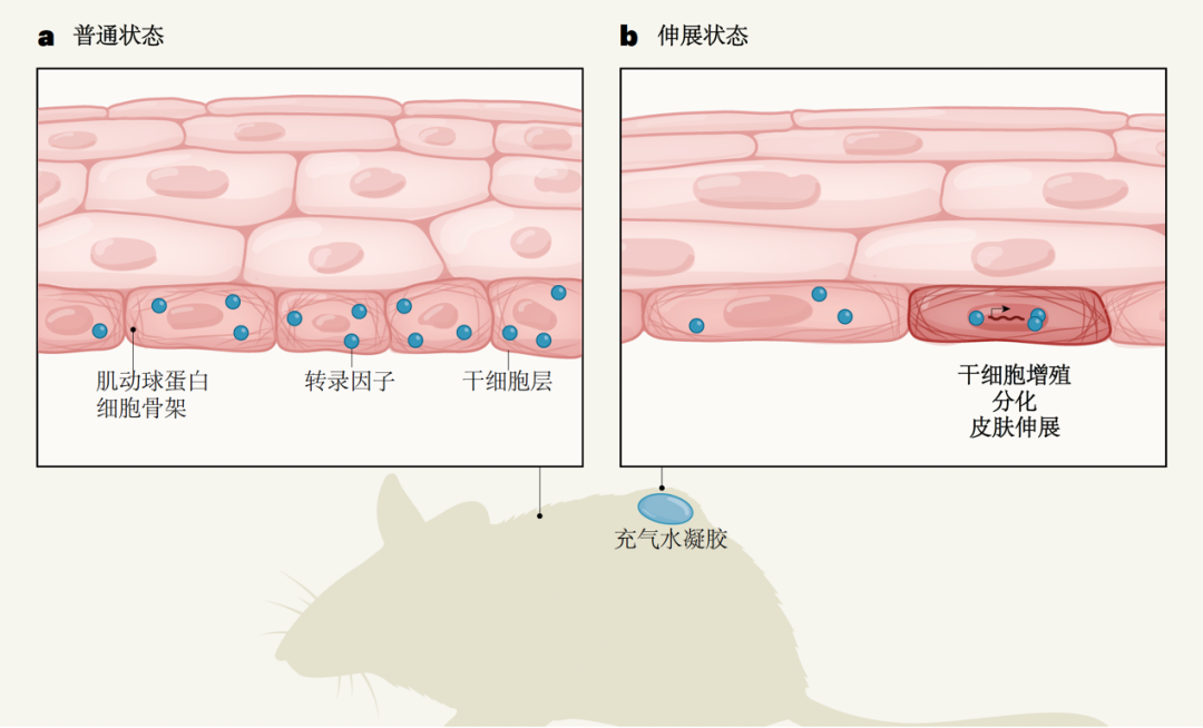 小鼠皮肤在经受拉伸时干细胞的增殖、分化(图片来源:参考文献3)
