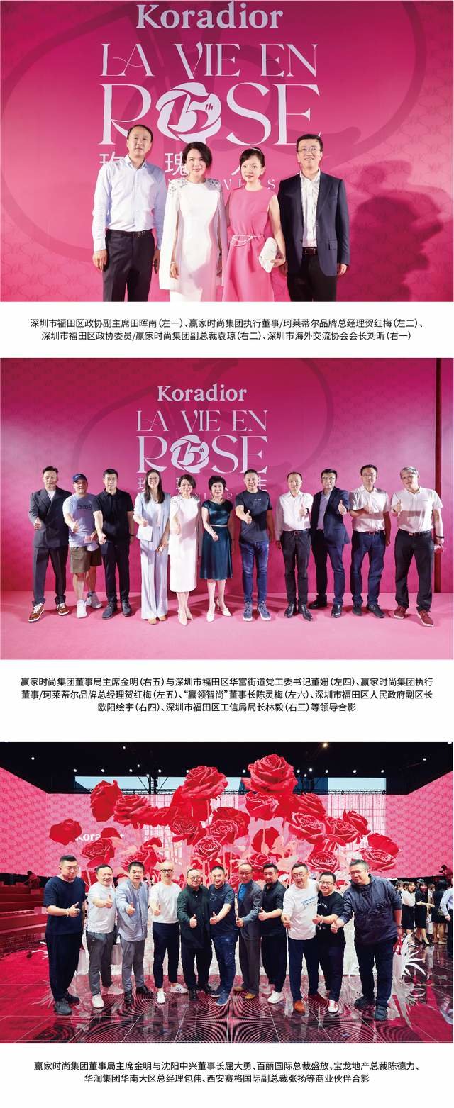 中国深圳——2022年8月26日,赢家时尚集团(3709.HK)旗下高端女装品牌Koradior珂莱蒂尔,在位于福田区深业上城的深圳文华东方酒店,开启了一场如梦如幻的15周年「La Vie En Rose玫瑰人生」沉浸式大秀。