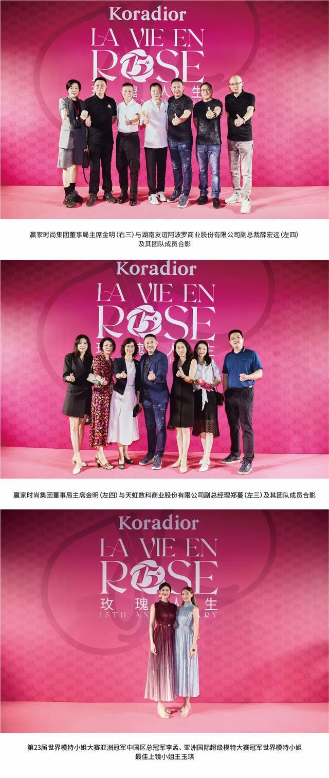 瑰香馥郁,星光同耀。Koradior珂莱蒂尔品牌代言人佟丽娅、品牌挚友李菲儿、品牌挚友宣璐盛装出席,与赢家时尚集团董事局主席金明、赢家时尚集团执行董事/珂莱蒂尔品牌总经理贺红梅、众多行业领导、艺术家、时尚达人、主流媒体和品牌SVIP一起,一睹大秀的惊艳华美。明星嘉宾们的绝美演绎,令这个流光溢彩的夜晚愈加熠熠生辉,循着玫瑰的芬芳穿梭时空,沉浸式探索品牌十五载发展脉络,以回顾经典的方式展望未来,身临其境揭开了故事的浪漫新章。
