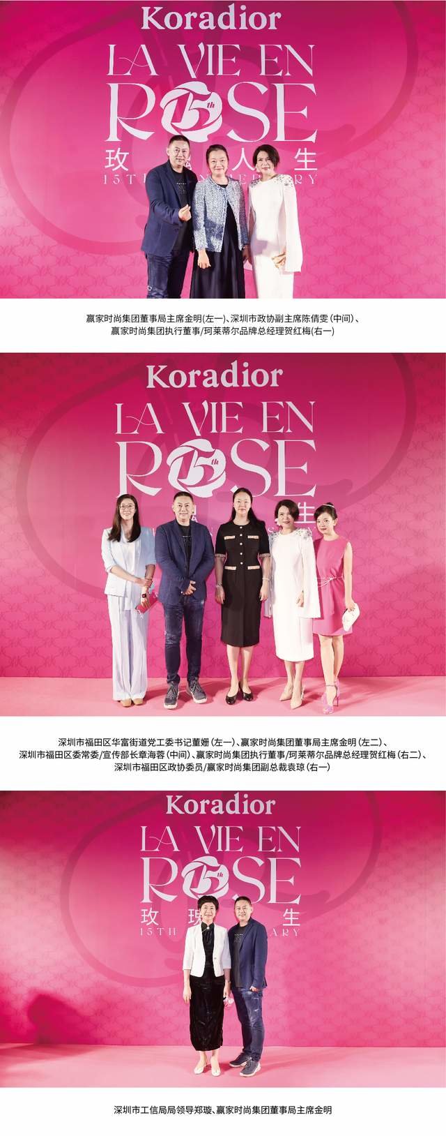 赢家时尚集团执行董事/珂莱蒂尔品牌总经理贺红梅、Koradior品牌代言人佟丽娅、赢家时尚集团董事局主席金明