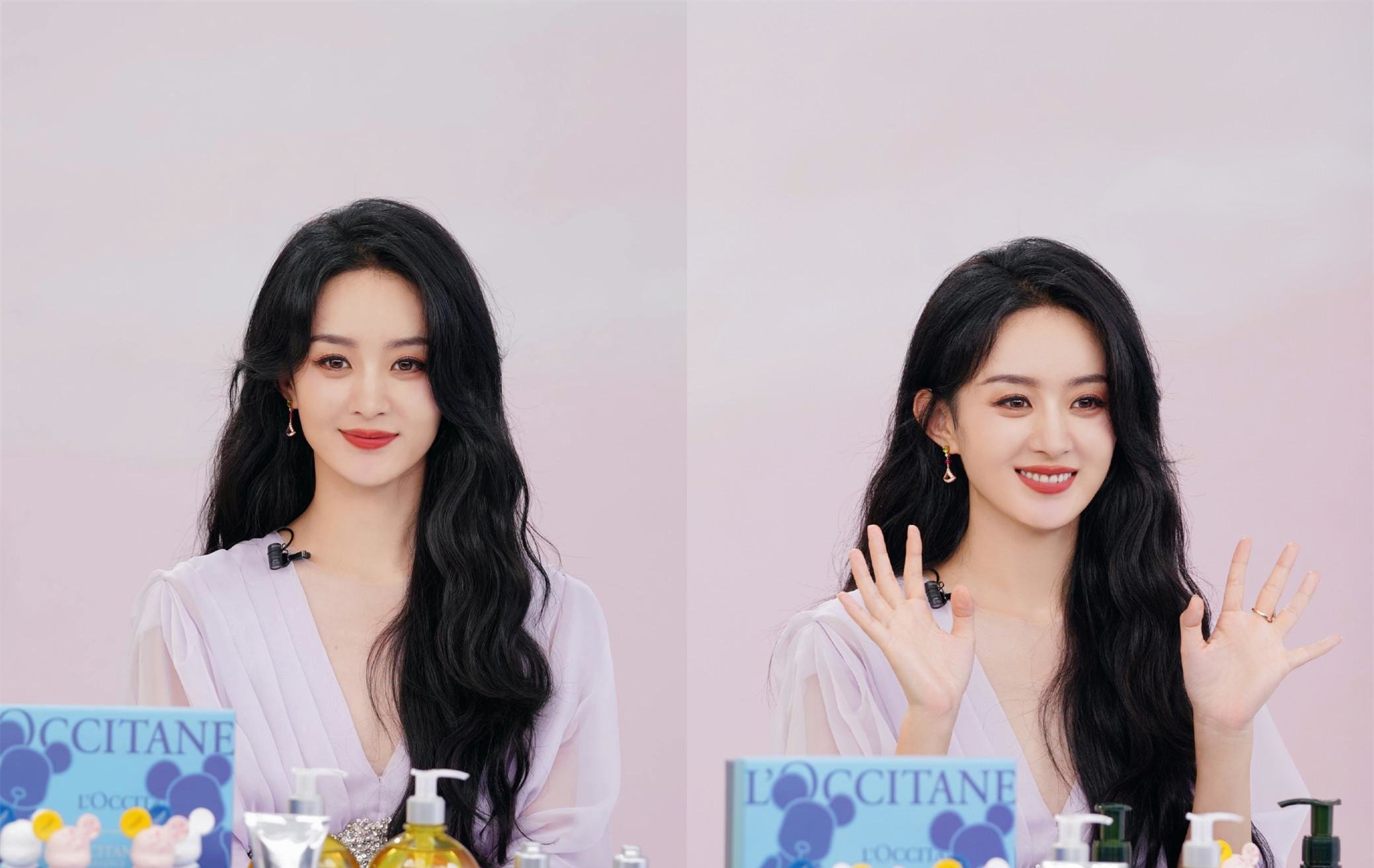 亮相直播间带货,赵丽颖穿了一套来自Georges Hobeika 2022春夏高级定制的淡紫色礼服。