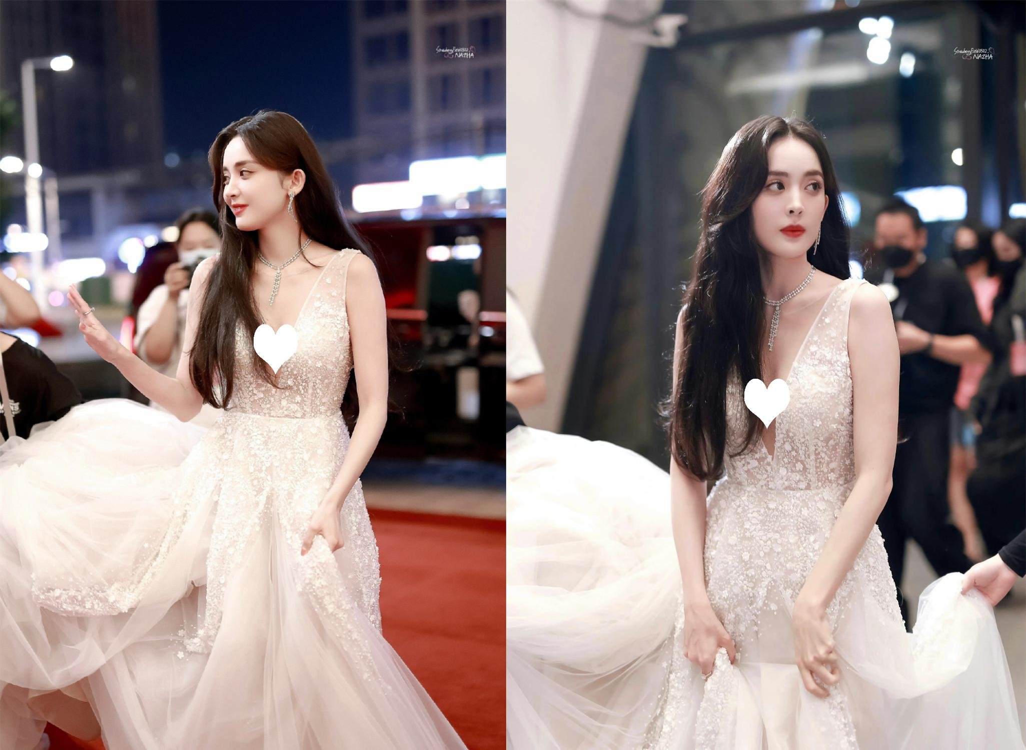 最近亮相线下活动,娜扎选了一套白色的V领婚纱礼服,对于娜扎来说,这种高腰的婚纱大裙子就是最easy的选择。