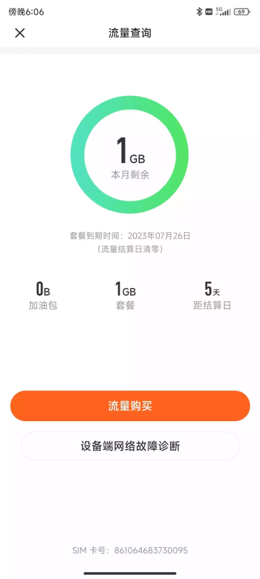 只需要根据APP提示,完成实名认证等步骤,很快就能成功绑定4G模块。通过APP查询可知,流量卡一共提供12GB的流量(自带每月1GB的流量套餐)能够满足日常使用。