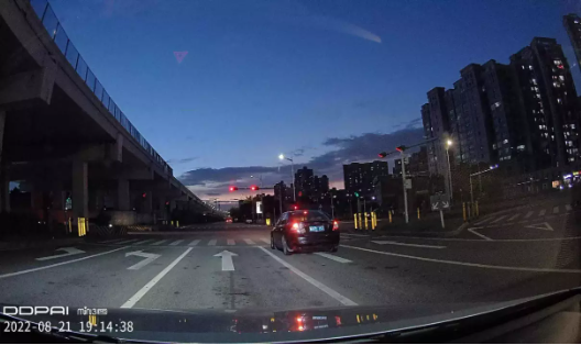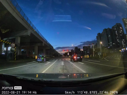 在红绿灯路口,两款行车记录仪拍摄的画面都是比较清晰的。不过可能因为70迈M500的广角更大,所以画面视野看起来更加舒服一些,没有那么强的压迫感。与此同时,画面的清晰度也是70迈的M500处理的更好。