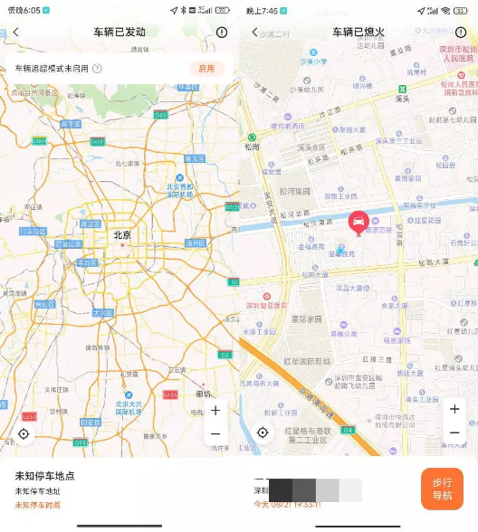 连接授权完成之后,我们可以通过APP开启车辆追踪模式,实现远程监控,实时获取车辆位置和状态。