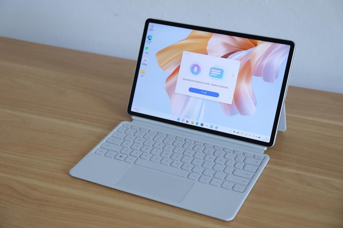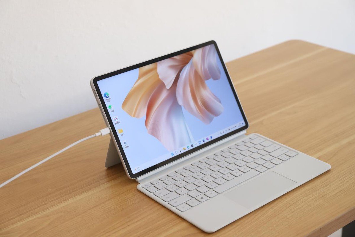 在外观设计还有一点值得一提,那就是华为MateBook E Go二合一笔记本提供了两个TypeC接口,而且这两个接口分别置于笔记本的两侧,且都能支持充电或数据传输能力。相比较Pad类产品,这个设计的生产力味道更浓,毕竟作为一款笔记本产品,扩展能力还是非常重要的。而左右分开的设计,即便强迫症用户也不会挑刺,用户可以根据桌面的摆设和使用习惯,设定在哪一侧充电或连接数据设备。