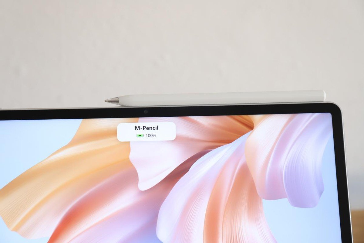 全新的HUAWEI M-Pencil(第二代)雪域白还支持了蓝牙自动配对连接以及磁吸充电,满电情况下可使用约10小时,平时不需使用时,只需将其贴在华为MateBook E Go的长边框上就能充电,还起到了收纳的作用,这个设计很人性化。
