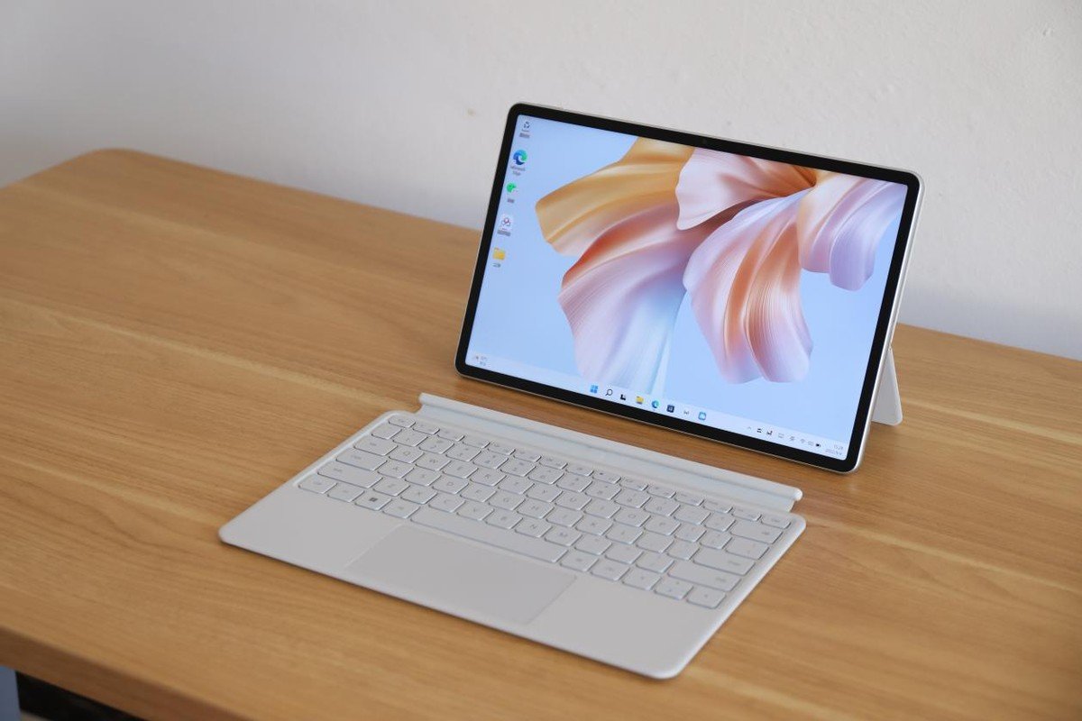 在设计上,华为MateBook E Go采用微绒玻纤材质,配合三涂三烤旗舰级工艺,亲肤的材质让手感更温润柔和,简约大气的外观也更符合商务人群的审美风格,从实际触感体验来说,微绒的手感非常接近华为MateBook X Pro 2022。