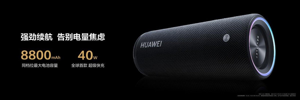 如果是你着急出门,但是电量没有充够,华为Sound Joy还配备了Type-C接口,支持40W超级快充,充电十分钟即可播放一小时,如此快的充电速度能够很大程度上缓解电量焦虑问题。