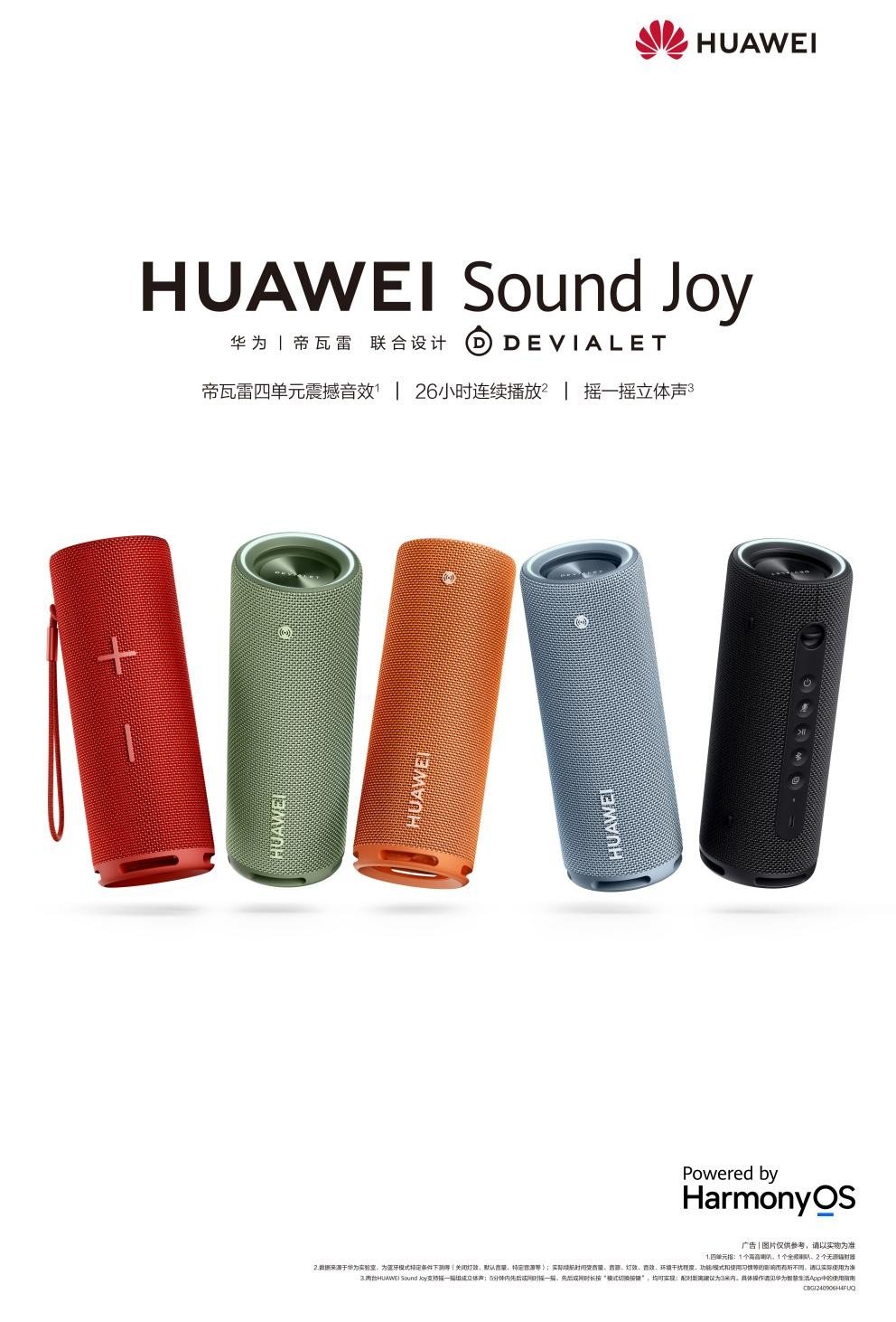在今年的3月份,华为给出了答案,其发布了可连续播放时间长达26小时的华为Sound Joy,在具备完美音质的同时,解决了户外音箱续航短的痛点。9月6日,在华为Mate50系列及全场景新品秋季发布会上,华为Sound Joy又新增了两款新配色——海岛蓝和活力橙。目前有曜石黑、云杉绿、珊瑚红、活力橙、海岛蓝,5种颜色选择。